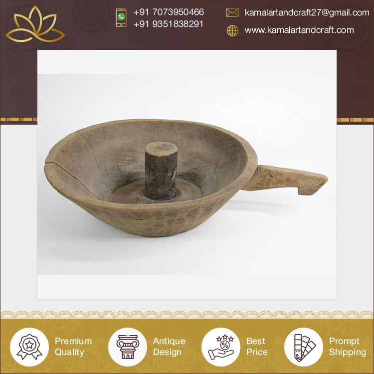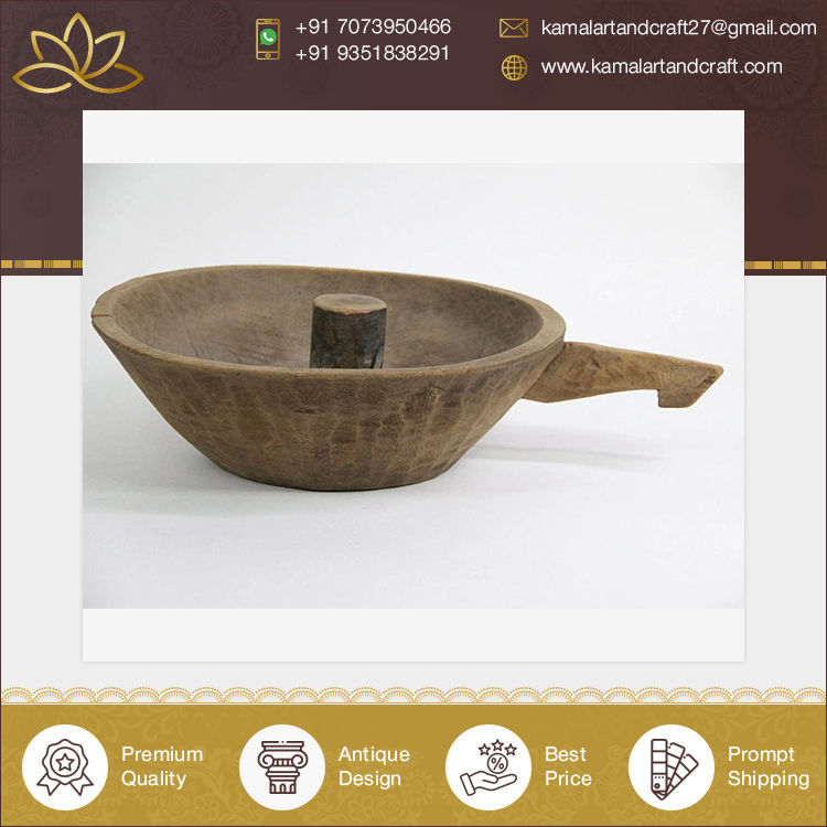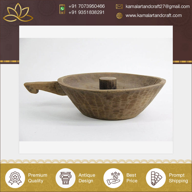 Antique Wooden Dough Bowl with Handle High Quality Vintage Style Customized Color Kamal Art Craft Home Decor Indian Supplier