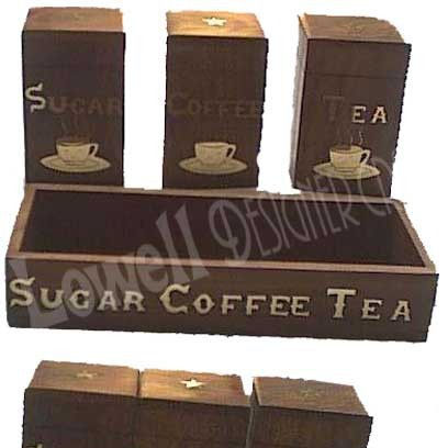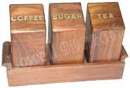 Antique Wooden Storage Box for Tea Coffee & Sugar Stylish Handcrafted Jar Organizer for Home Kitchen Rustic Vintage-Inspired