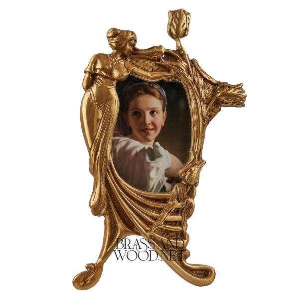 Antique art nouveau brass portrait frame with elegant lady sculpture ornate vintage collectible decorative design