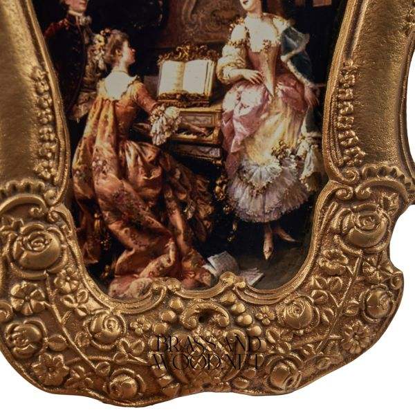 Antique baroque brass photo frame with embossed floral patterns vintage collectible portrait holder elegant classic design