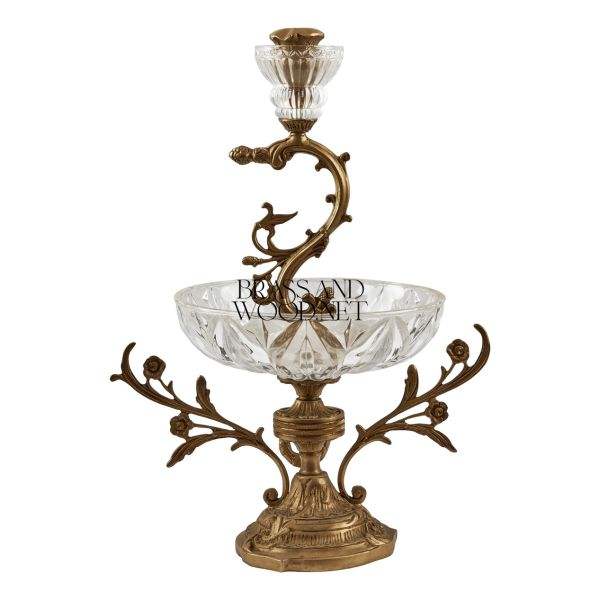 Antique brass and crystal candlestick ornate floral design luxury vintage inspired candle holder elegant home decor