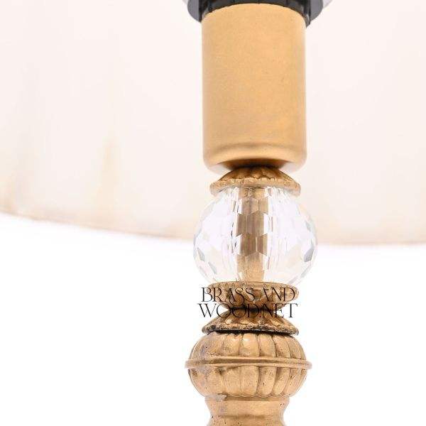 Antique brass table lamp with black marble base decorative column and elegant fabric shade for luxury interiors