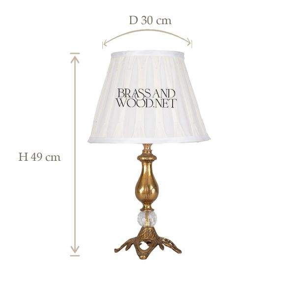 Antique brass table lamp with curved decorative base crystal accent and classic fabric shade for luxury interiors