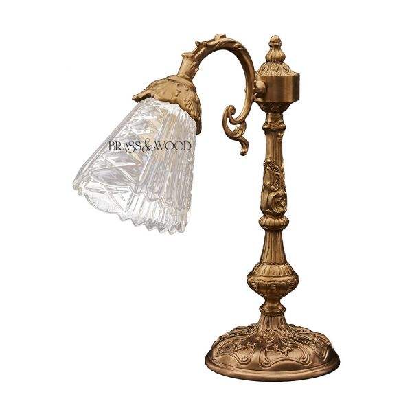 Antique brass table lamp with ornate decorative base and cut crystal glass shade for luxury classic interiors