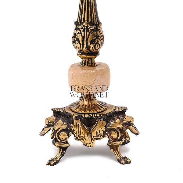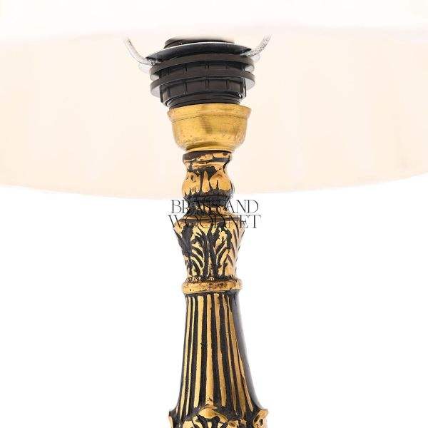 Antique brass table lamp with ornate base marble accent and elegant fabric shade for luxury classic interiors