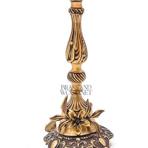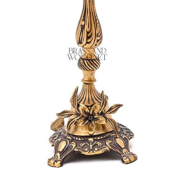 Antique brass table lamp with ornate floral base and elegant fabric shade for luxury classic interior lighting