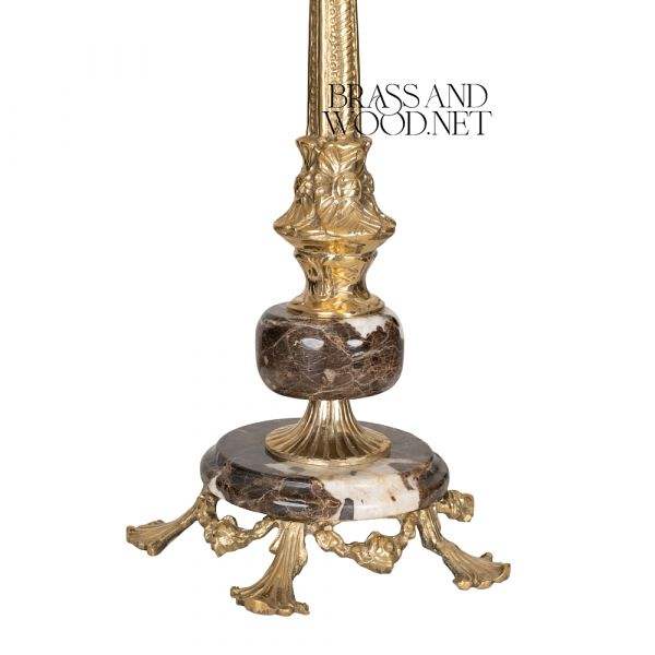 Antique brass table lamp with tall artistic stem and elegant fabric shade featuring a classic decorative base for luxury home