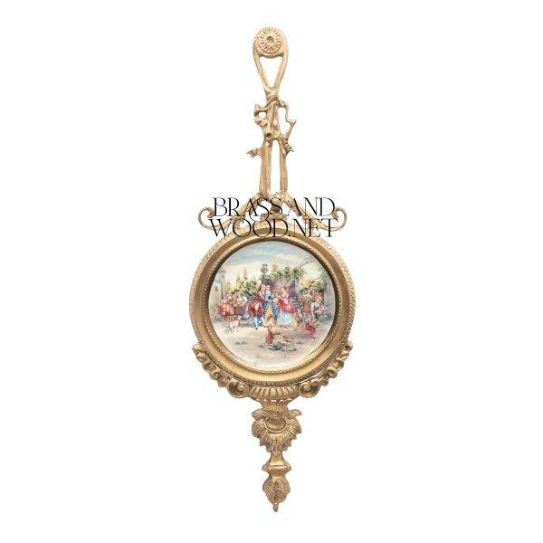 Antique brass wall art with elegant ornate frame and royal porcelain painting in vintage classic design