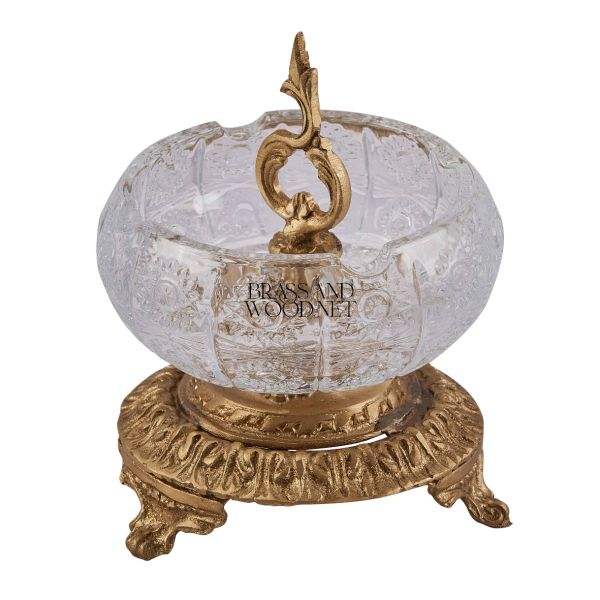 Antique copper ashtray handmade decorative round crystal bowl with brass stand vintage style elegant smoking and home accessory
