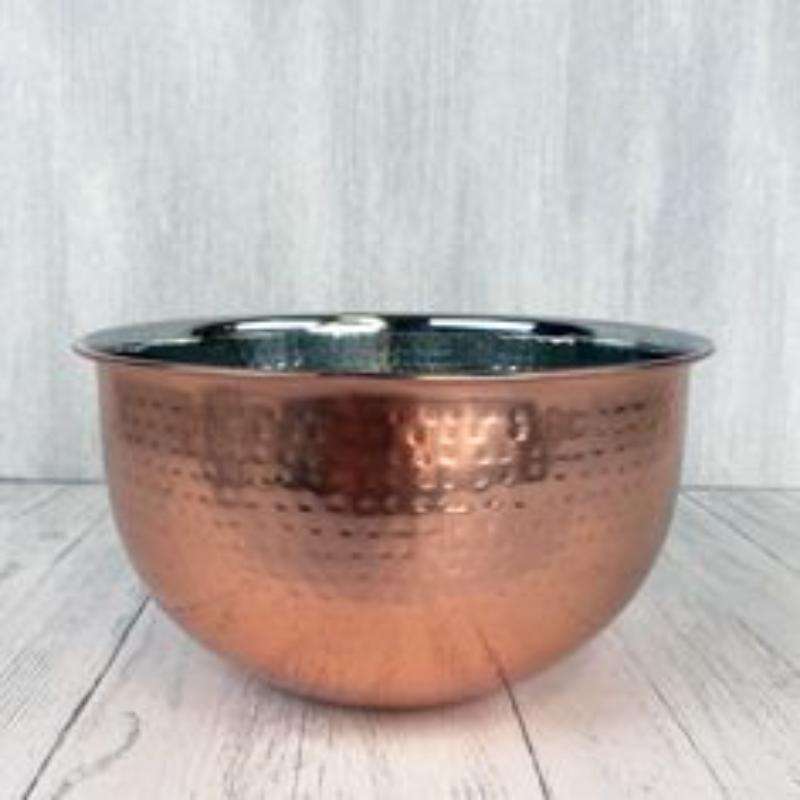 Antique handcrafted hammered copper serving bowl for kitchen table decor and traditional food presentation in rustic style homes