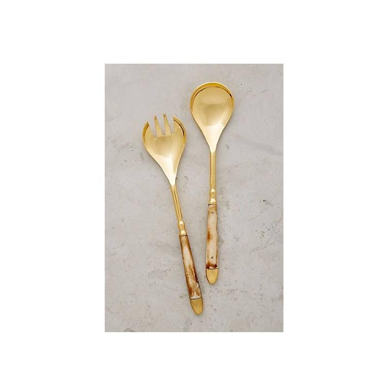 Antique brass salad server utensils with engraved floral detailing perfect for Indian festive celebrations