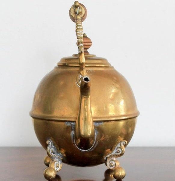 Antique inspired brass tea pot and kettle with handcrafted finished for royal home decor lovers and heritage collectors