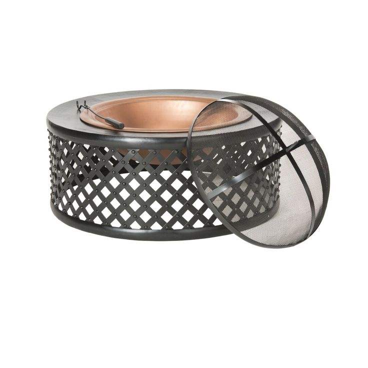 Antique look copper fire pit with ornate metal frame for rustic garden style and comfortable outdoor heat solution