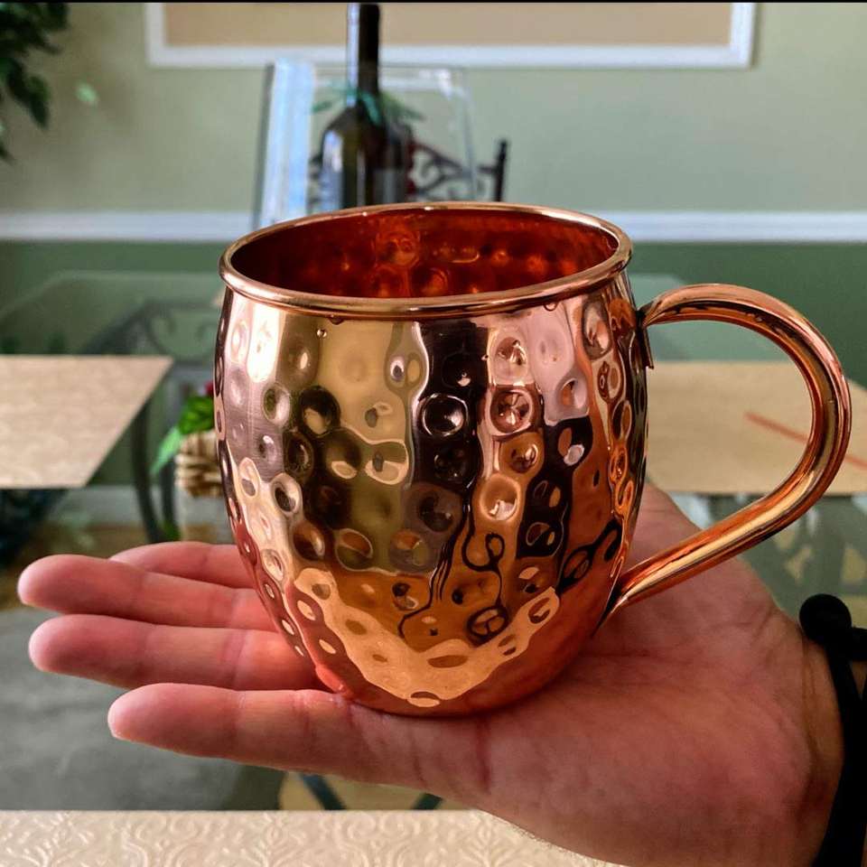 Antique look hammered copper mug handmade solid design ideal for Moscow Mule bar cocktails juice and water drink serving