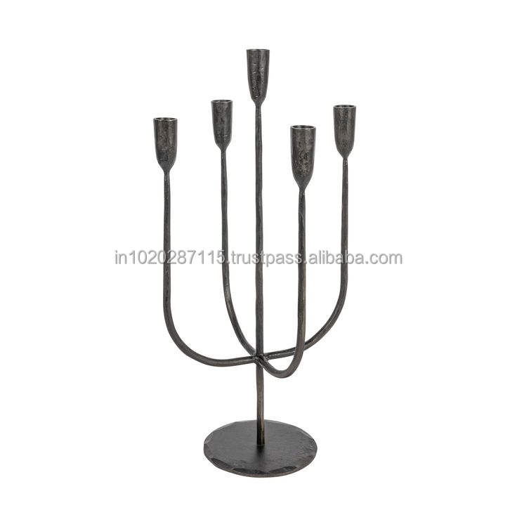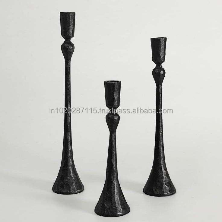 Antique style tall black iron candle holder with elegant curves for cozy lighting in vintage inspired interiors