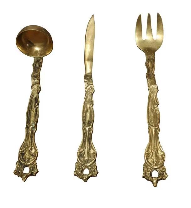Antique vintage flatware set using brass cutlery connects modern dining with centuries-old culinary traditions