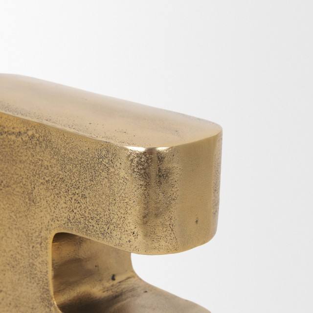Antiqued Brass Large Decorative Sculpture serves as contemporary art piece featuring solid modern polished sculpture geometric