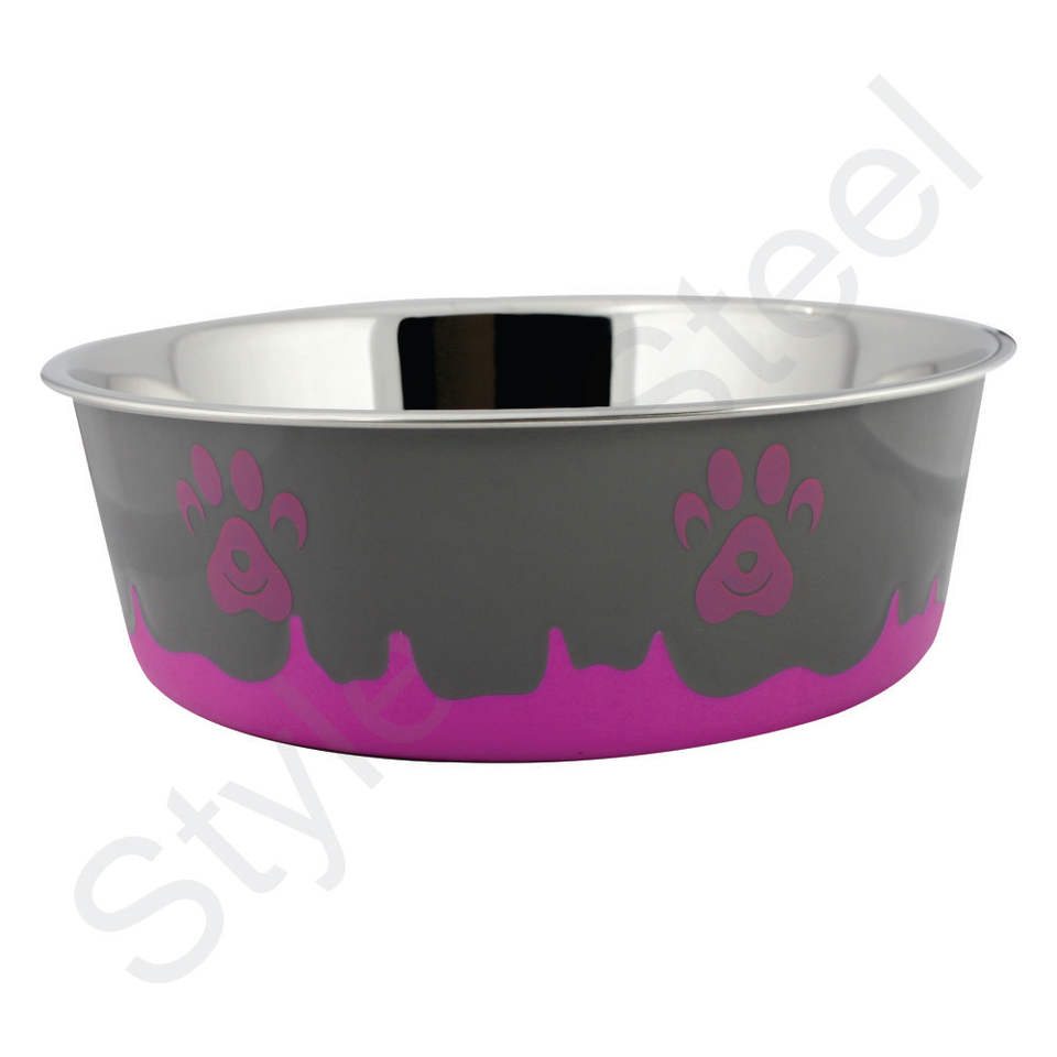 Antiskid Pet Bowl Outside Violet Color Paw Print Anti Skid Silicone Base Stainless Steel Pet Bowl at Wholesale Price Splash