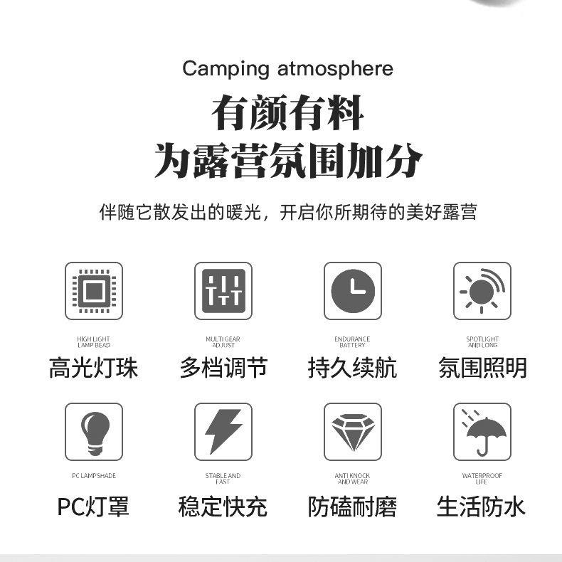 YT-81004 Rechargeable Portable Outdoor Lighting Camping Lamp for Garden Use ABS/Plastic White Red Green Body Cold White Emission