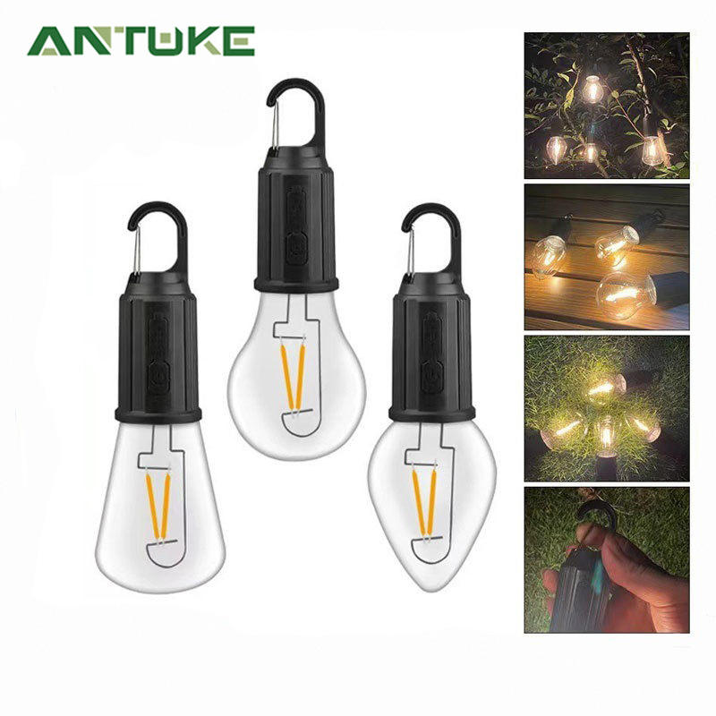 Antuke Solar Powered Camping Light Led Bulb Outdoor Retro Tent Lamp With Hook For Garden Party Decor 25000 Hours Lifespan