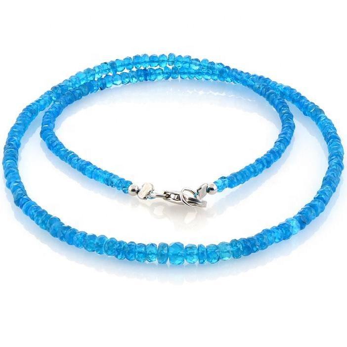 Men's 16" Natural Apatite Blue Cut Gemstone Neon Faceted Beads Rondelle Shape Classic Strand Beaded Necklace for Anniversary