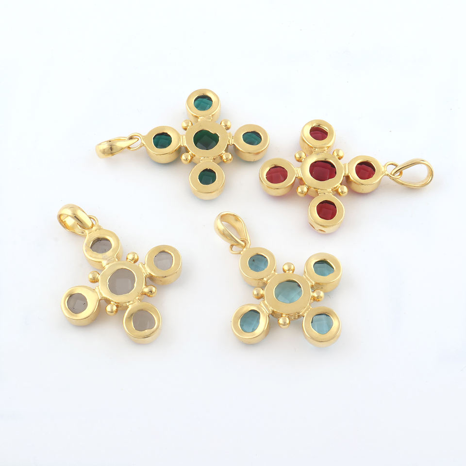 Apatite & Emerald Quartz Cross shape pendant bezel charm gold plated beaded designer prong set handmade bulk product
