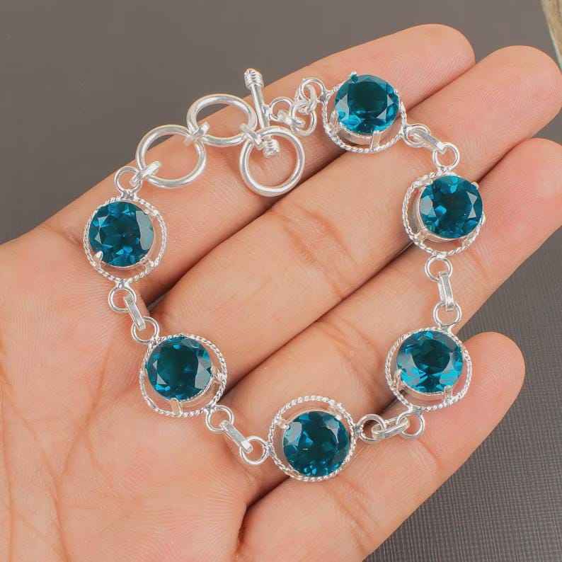Apatite Gemstone Bracelet 925 Sterling Silver Handmade Bracelet Natural Blue Jewelry Gift For Her