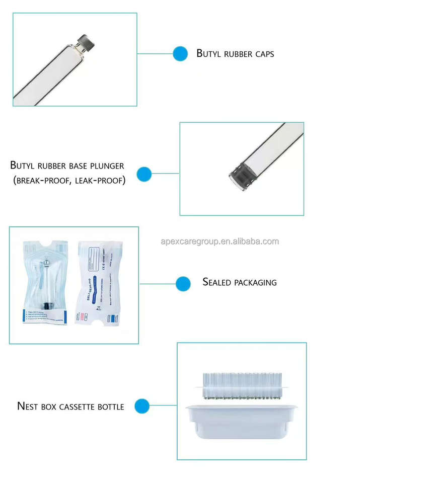 ApexCare Hot Sale 3ml Cylindrical Glass Cartridge Sterile Rubber Stopper Aluminum Cap Eco-Friendly for Cosmetic Pharmaceutical