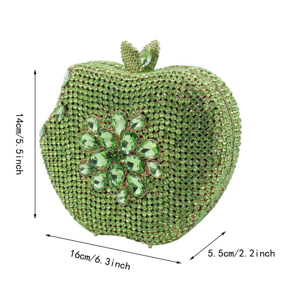 Cute Apple Shape Glitter Rhinestone Diamond Evening Clutch Bag Fashionable Handbag for Party Prom Banquet or Casual Use
