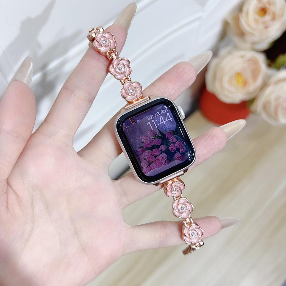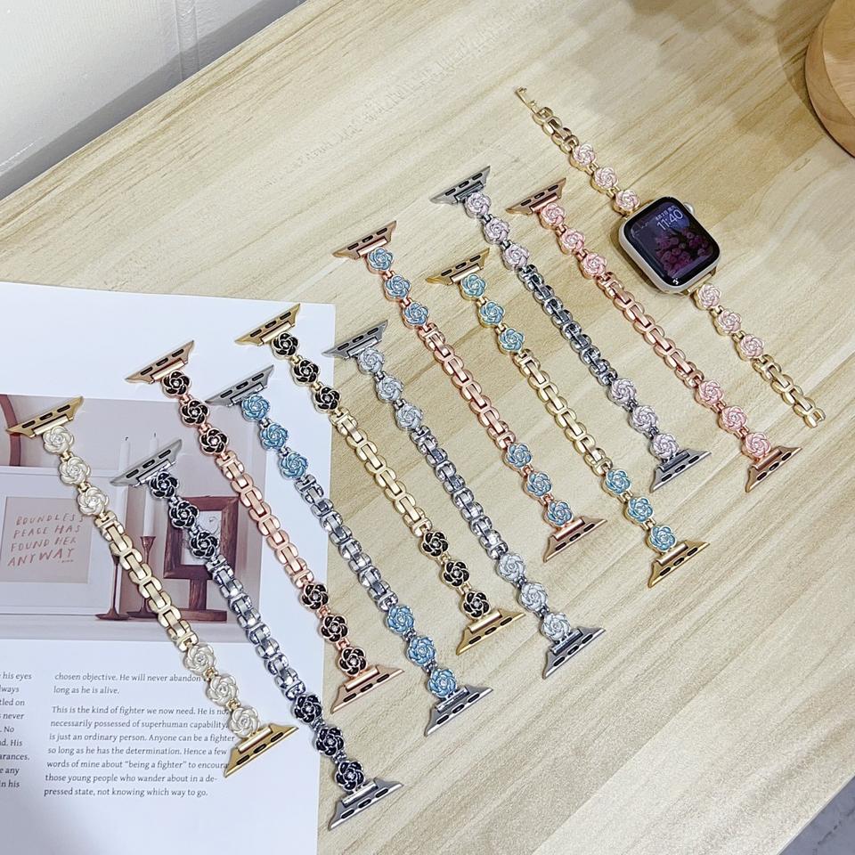 Upro Fashion Watch Strap For Apple Watch 10 9 8 SE 7 6 5 4 3 Luxury Flower Metal Smart Watch Band for IWatch