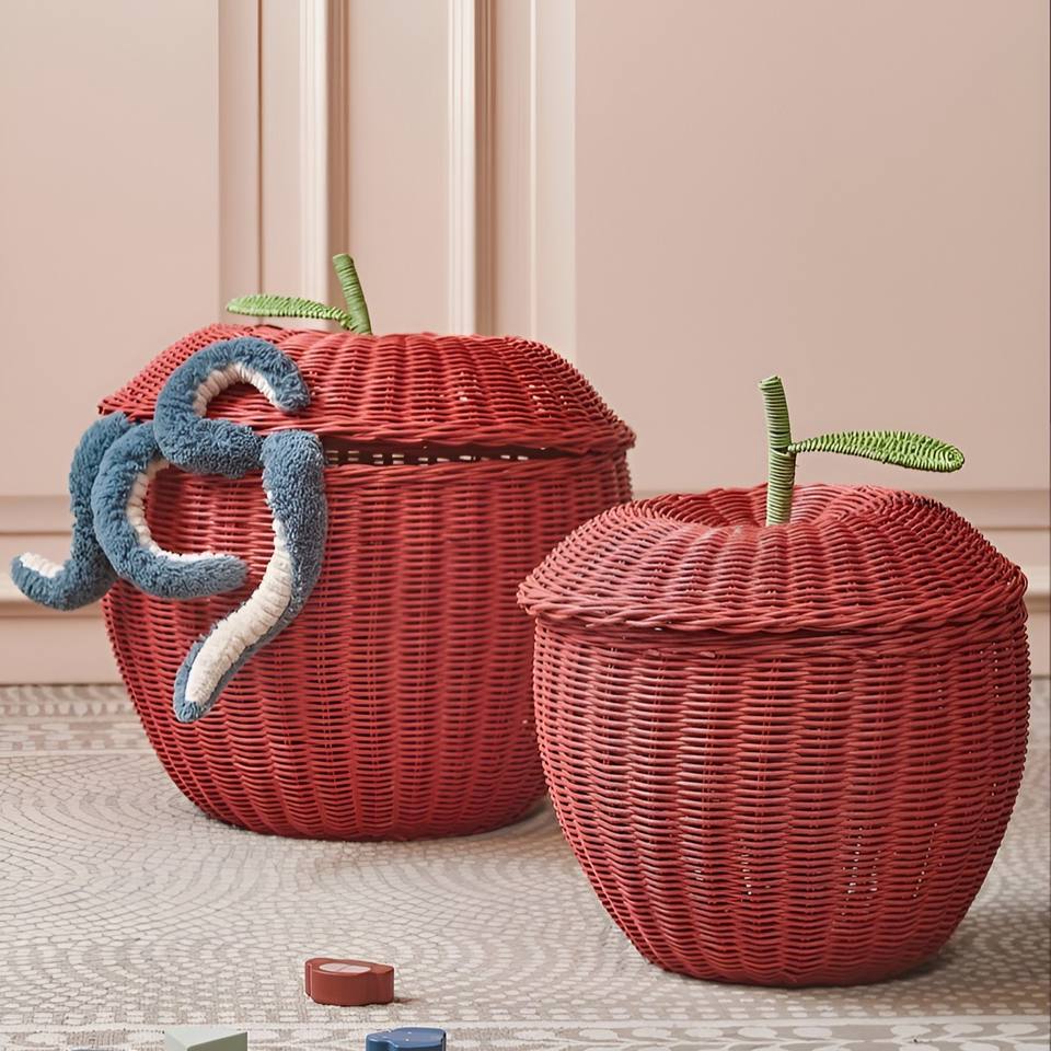 Apple design rattan kids storage basket colored braided hamper baskets lowest price lidded hampers