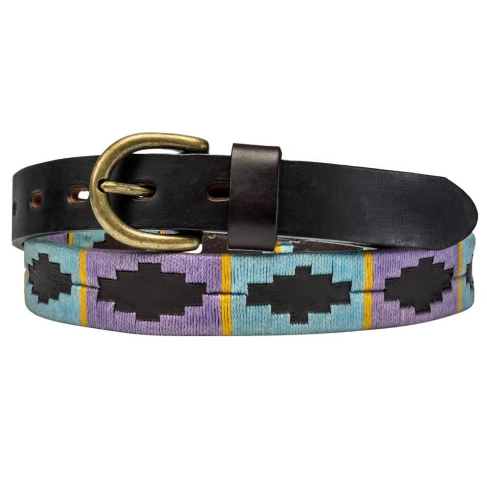 Aqua And Lilac Polo Belt With Handwoven Leather Detail Stylish Unisex Belt With Gaucho Design And Premium Craftsmanship