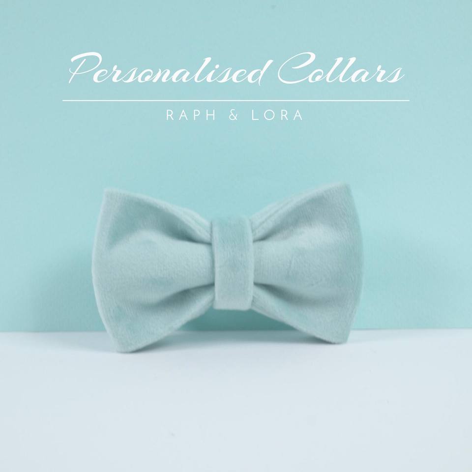 Personalized Tactical Style Solid Pattern Fancy Blue Velvet Cat & Dog Collar Bow Set with Rivet Decoration and Gold Bell