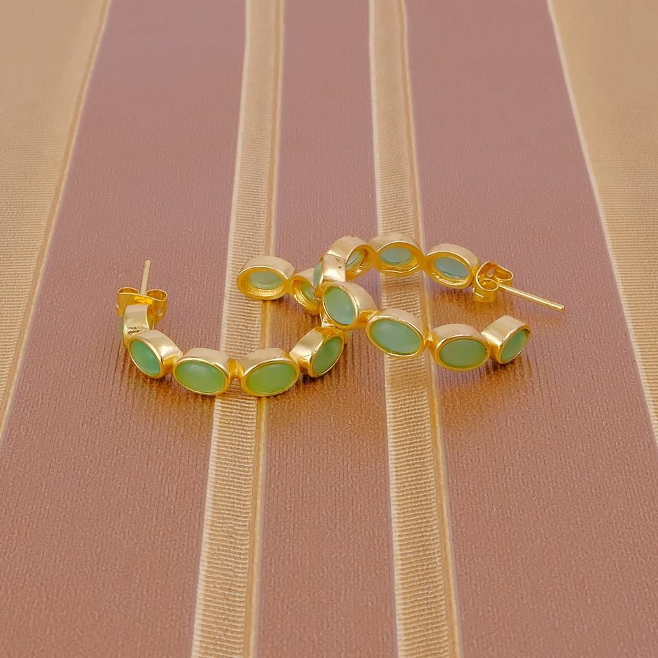 Aqua Cats Eye Gemstone Handmade Gold Plated Trendy Hoop Stud Earrings Unique Designer Statement Jewelry