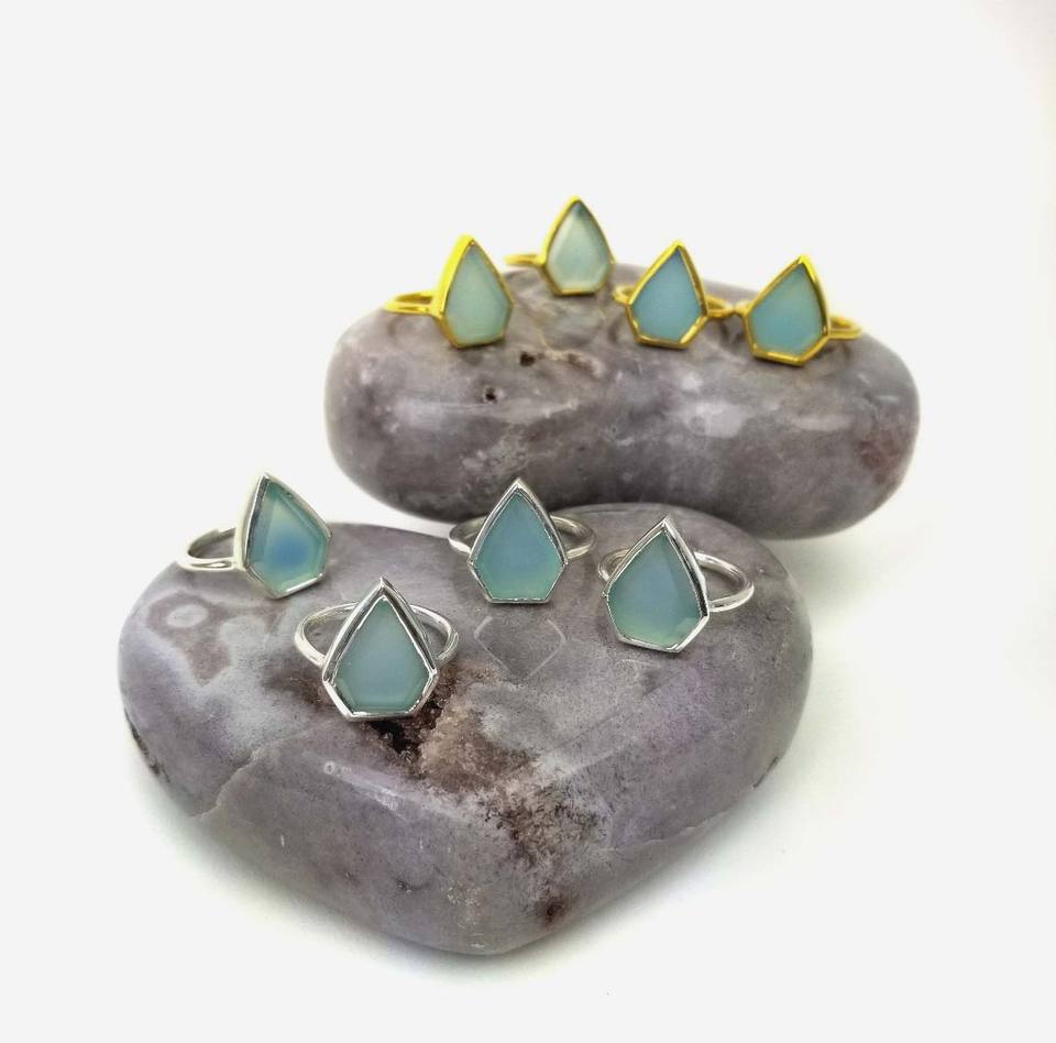 Product Name:Aqua Chalcedony Silver Gold Plated Bezel Ring