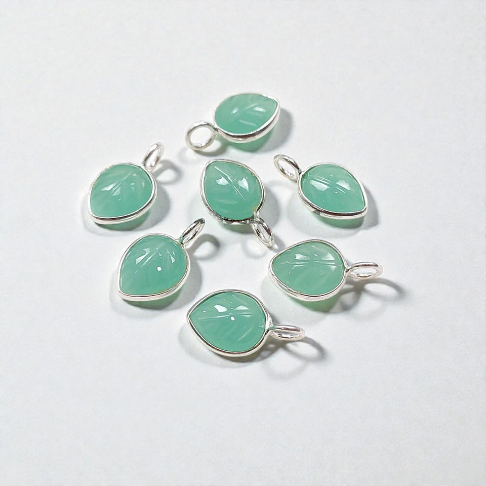 Aqua Chalcedony 8x10mm Leaf Carving Charm - 925 Silver Sea Blue Hand Carved Pendant - Elegant Nature Themed Jewelry Finding