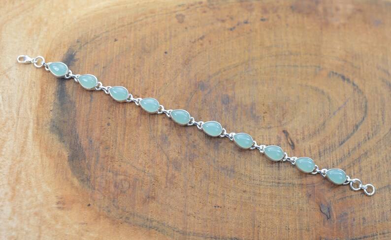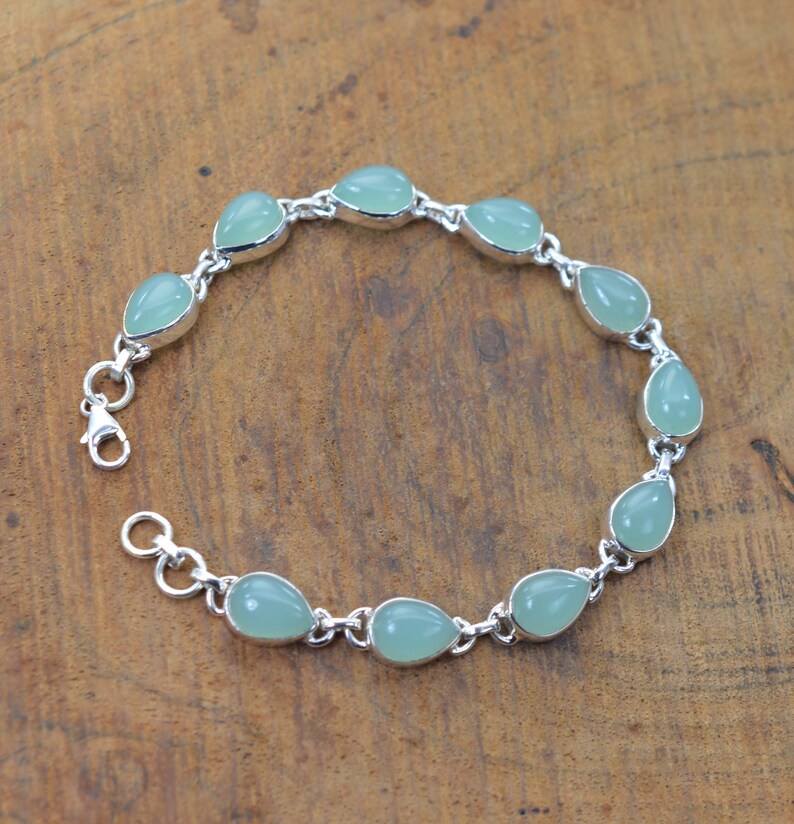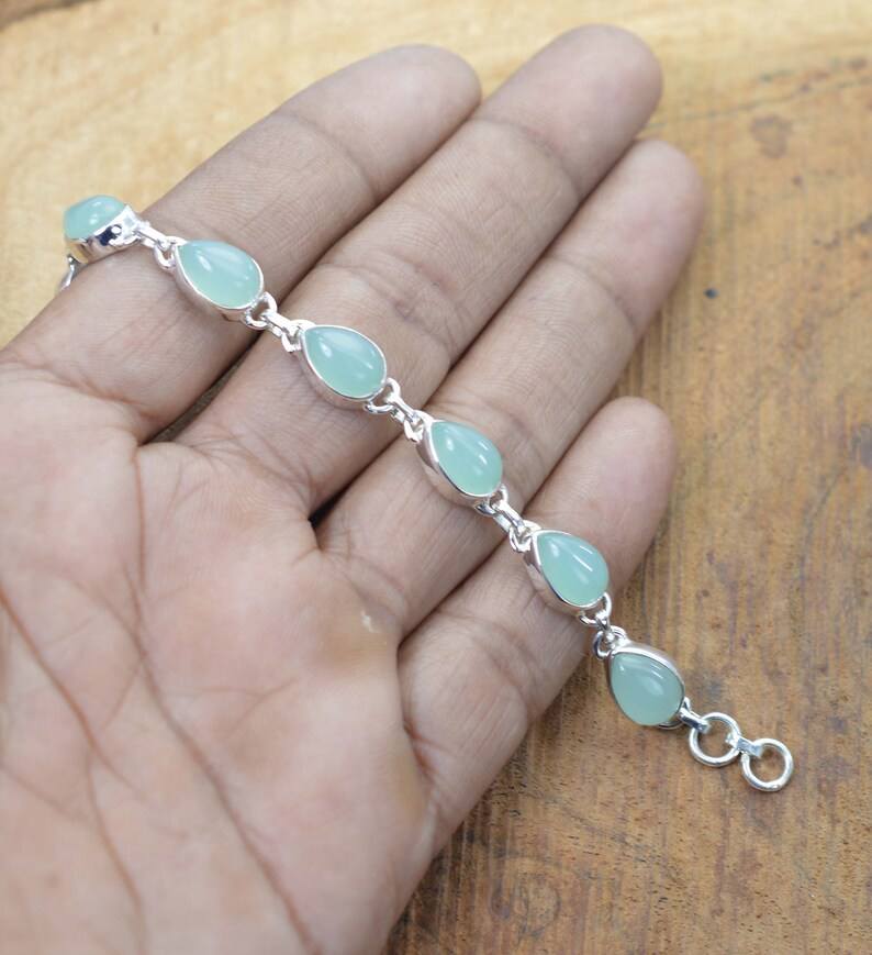 Keyword:Aqua Chalcedony Glowing Expansive Tennis Bracelet Elegant Jewelry