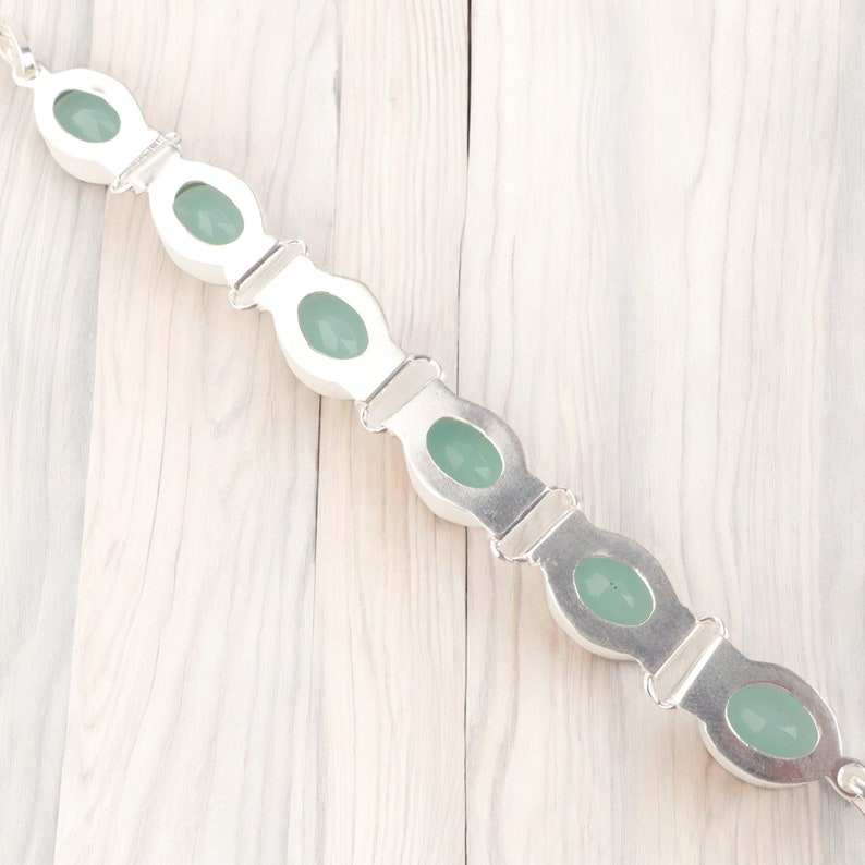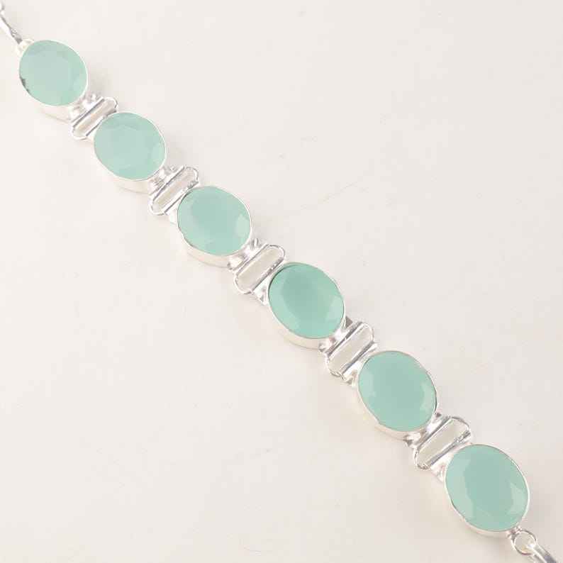 Aqua Chalcedony Charm Bracelet Handmade 925 Sterling Silver Zircon Oval Cut Luxury Jewelry for Women Anniversary Engagement