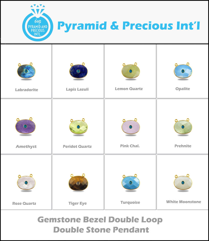 Aqua Chalcedony Double Stone 925 Sterling Silver Pendant Charm 20x15mm Faceted Oval Bezel Set Gold Plating Double Loop Fine