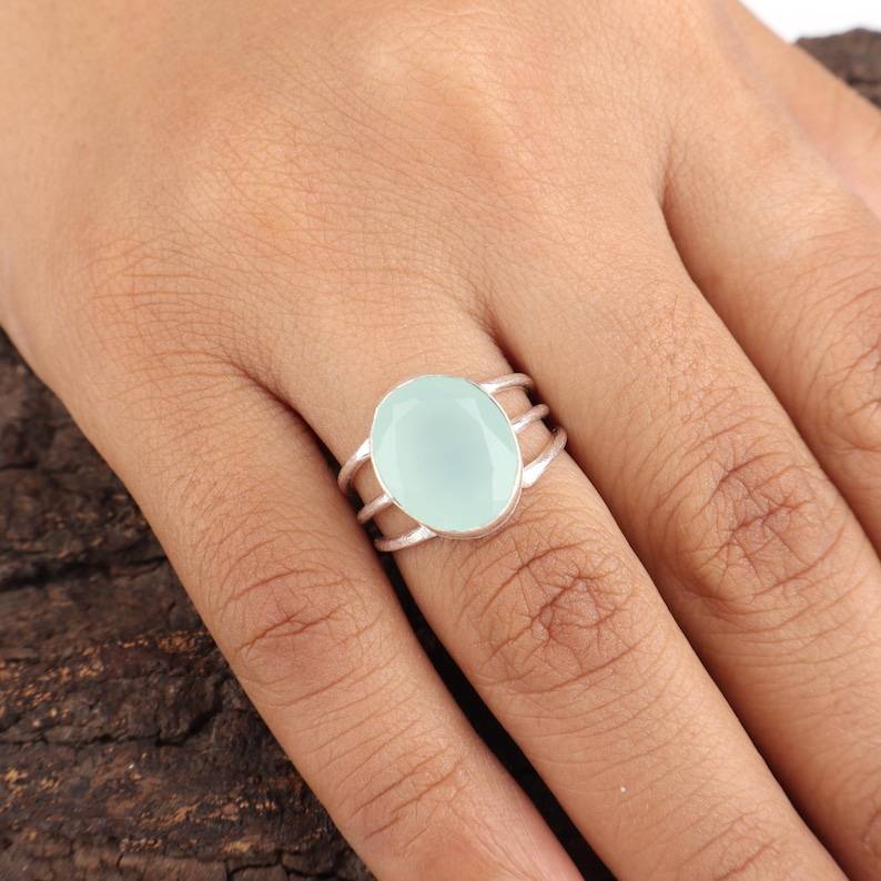 Product name:Natural Aqua Chalcedony Ring