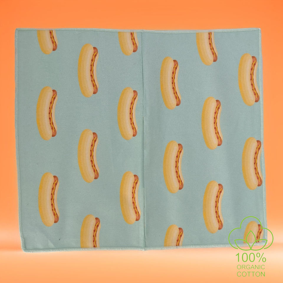 Aqua-Green Hotdog Printed 100% Cotton Certified Organic Pocket Square with Center Extra Stitching