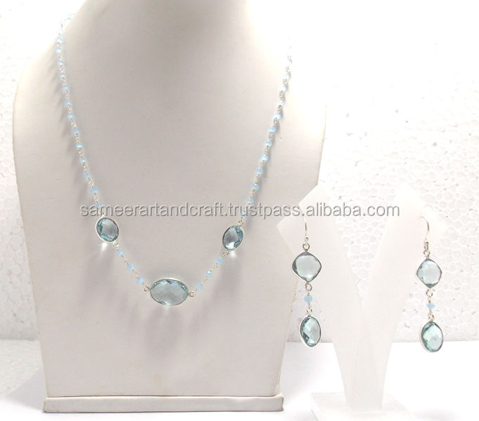 Jewlery Name:Aqua Quartz Bezel Necklace Set