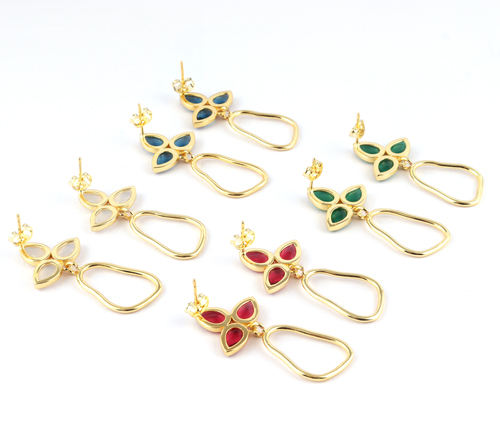 Aqua chalcedony gemstone dangle earring leaf design statement jewelry 18k gold plated brass fashion drop stud earring for her