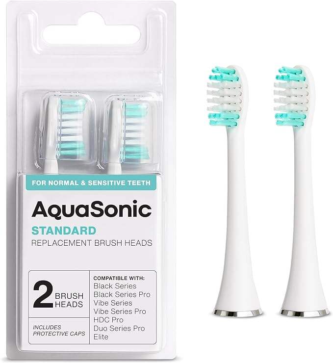 AquaSonic 2-Pack Standard Replacement Brush Heads for Normal & Sensitive Teeth Electric Toothbrushes Black