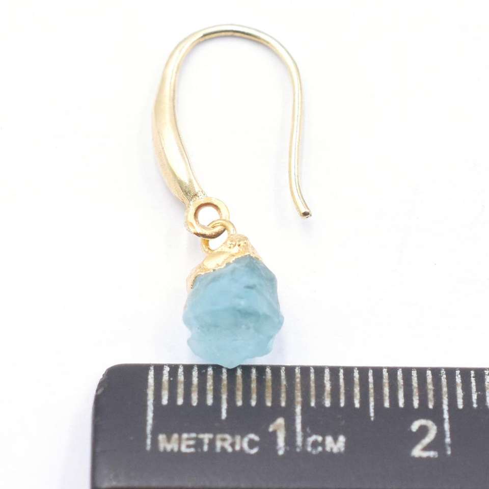 Aquamarine Ear Wire Rough Shape Gold Electroplated Earring