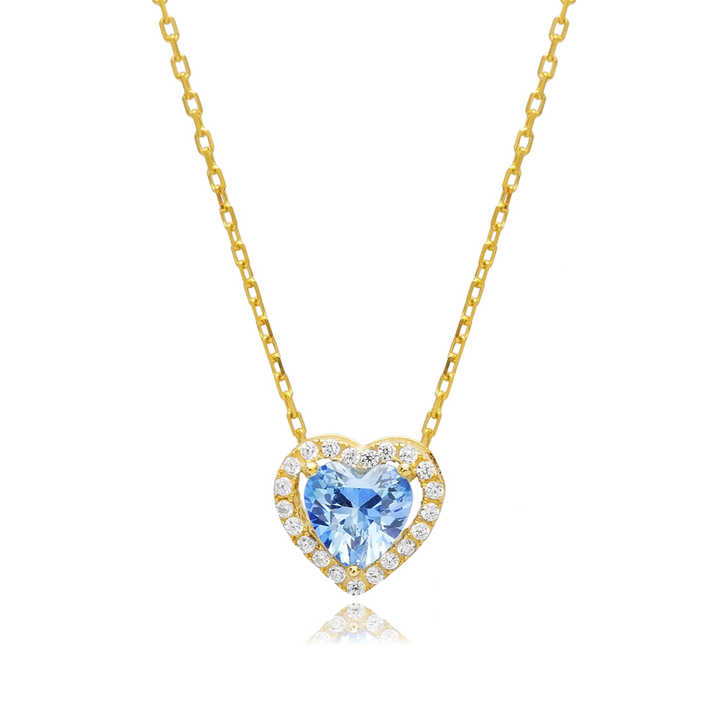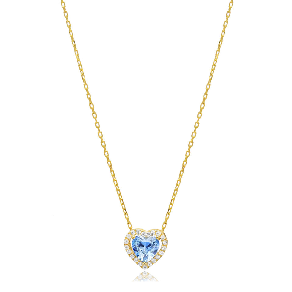 Aquamarine CZ Stone Heart Design Silver Charm Necklace Turkish Handcrafted Wholesale 925 Sterling Silver Jewelry
