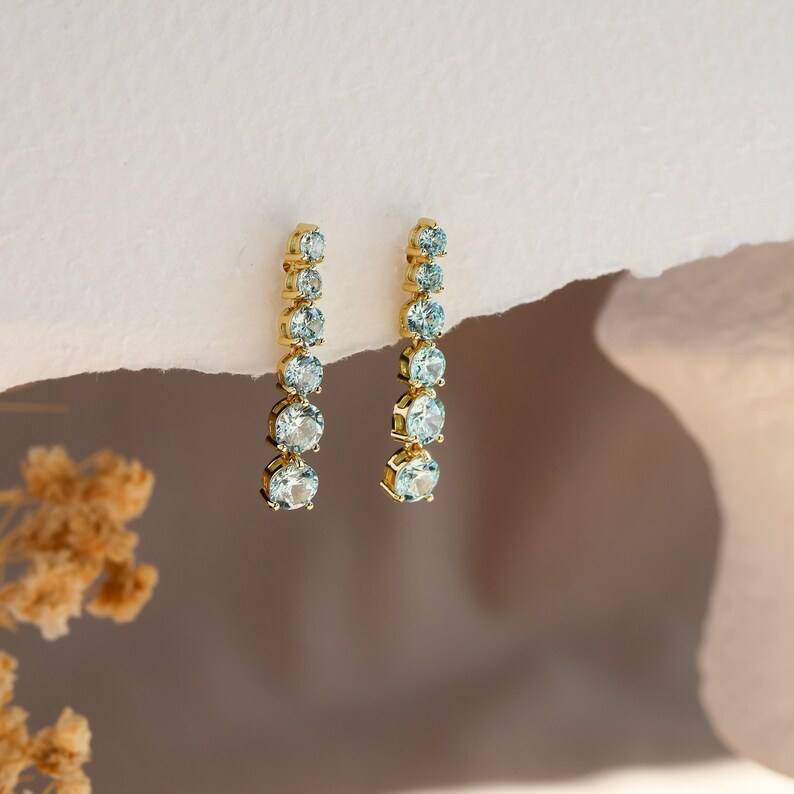 Keyword:Aquamarine Stud Earrings With Sparkling Dangle Gemstone Jewelry