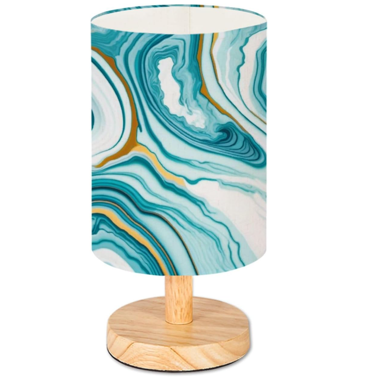 Aquamarine Marble Custom Pattern Texture Flowing Night Light Table Lamp for Bedroom Fabric Shade Flexible MOQ 1 Home Decor