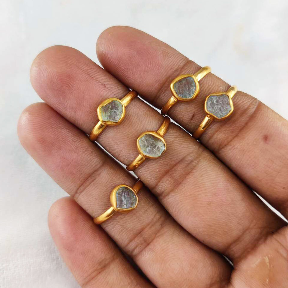 Aquamarine Natural Raw Birthstone Ring 925 Sterling Silver Rose Gold & Rhodium Plated Gemstone Jewelry