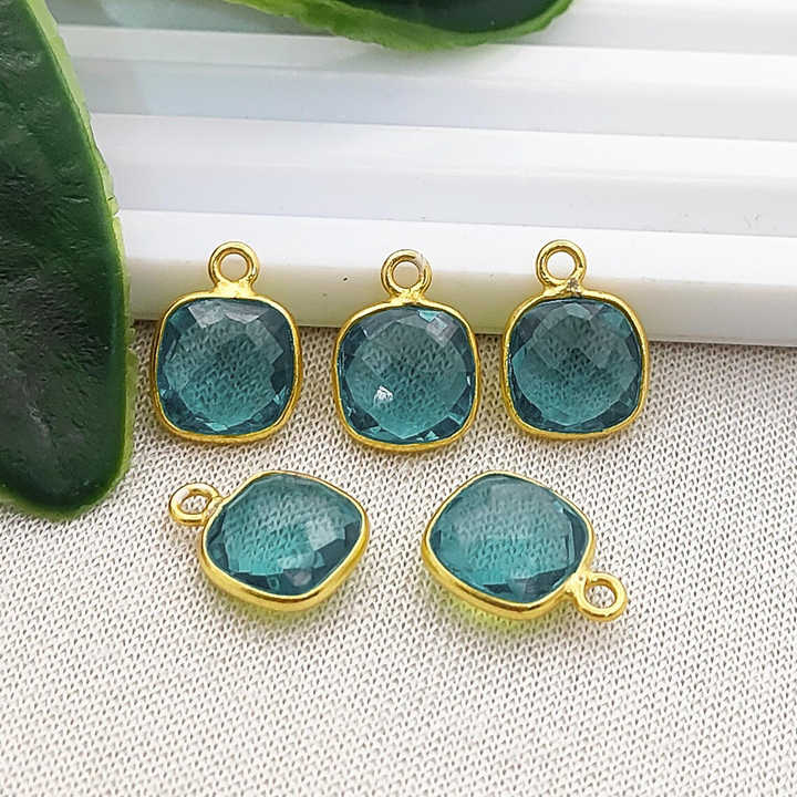 Aquamarine Quartz 8mm Cushion Charms 925 Sterling Silver Bezel Set Pendant Gold Plated Handmade Charms For Jewelry Making Charms